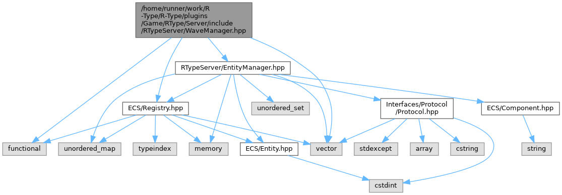 This file contains the WaveManager class which provides a comprehensive wave-based enemy spawning system for the R-Type game server. The manager handles timing, sequencing, and spawning of enemies in predefined waves with configurable patterns. It supports multiple wave types, spawn delays, wave completion detection, and dynamic difficulty progression throughout the game.