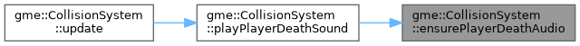 References ensurePlayerDeathAudio(), ecs::Registry::getComponent(), ecs::INVALID_ENTITY, and m_playerDeathAudioEntity.