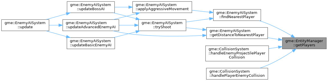 Referenced by gme::EnemyAISystem::findNearestPlayer(), gme::EnemyAISystem::getDistanceToNearestPlayer(), gme::CollisionSystem::handleEnemyProjectilePlayerCollision(), and gme::CollisionSystem::handlePlayerEnemyCollision().