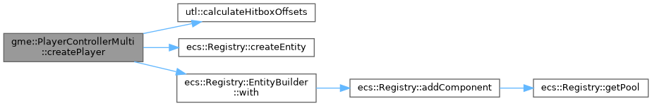 | ecs::Entity gme::PlayerControllerMulti::createPlayer | ( | ecs::Registry & | registry, |