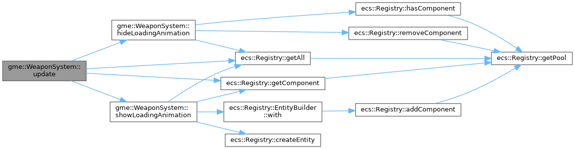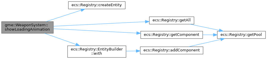 References utl::GameConfig::LoadingAnimation::ANIMATION_DURATION, utl::GameConfig::LoadingAnimation::ANIMATION_FRAMES, ecs::Registry::createEntity(), ecs::Registry::getAll(), ecs::Registry::getComponent(), utl::GameConfig::LoadingAnimation::OFFSET_X, utl::GameConfig::LoadingAnimation::OFFSET_Y, utl::GameConfig::LoadingAnimation::SPRITE_HEIGHT, utl::GameConfig::LoadingAnimation::SPRITE_WIDTH, utl::Path::Texture::TEXTURE_SHOOT_LOADING, ecs::Registry::EntityBuilder::with(), ecs::Transform::x, and ecs::Transform::y.